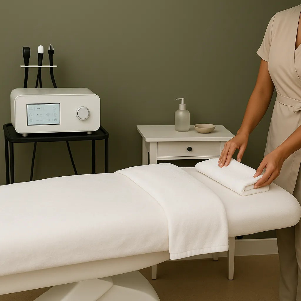 Nos soins du visage et du corps, basés sur la technologie INDIBA, agissent en profondeur pour stimuler la régénération cellulaire, améliorer la circulation, et redonner à la peau toute sa souplesse et sa lumière.